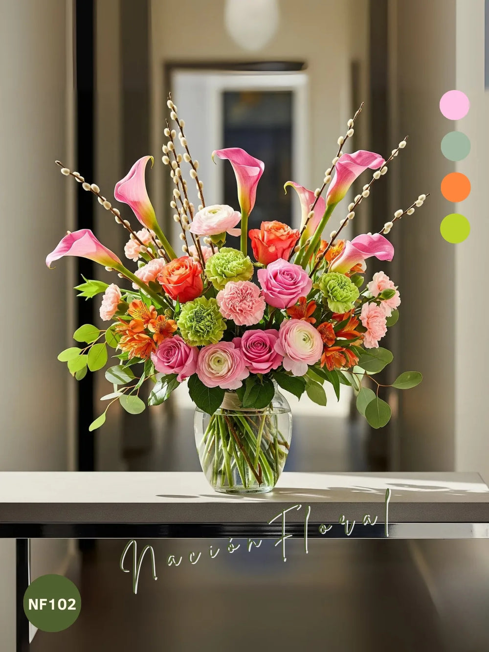 Este arreglo es perfecto para celebrar momentos especiales, enviar felicitaciones con un toque de originalidad, o para infundir alegría y vitalidad en cualquier ambiente. Su presencia es ideal para ocasiones festivas, como un regalo lleno de color o para transformar espacios con su energía contagiosa.