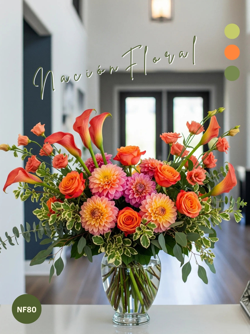 Este arreglo es perfecto para celebrar momentos especiales, expresar felicitaciones con un toque de originalidad o para infundir alegría y vitalidad en cualquier espacio. Su combinación de flores y colores lo hace ideal para aquellos que buscan un regalo que transmita energía positiva y una belleza inolvidable.