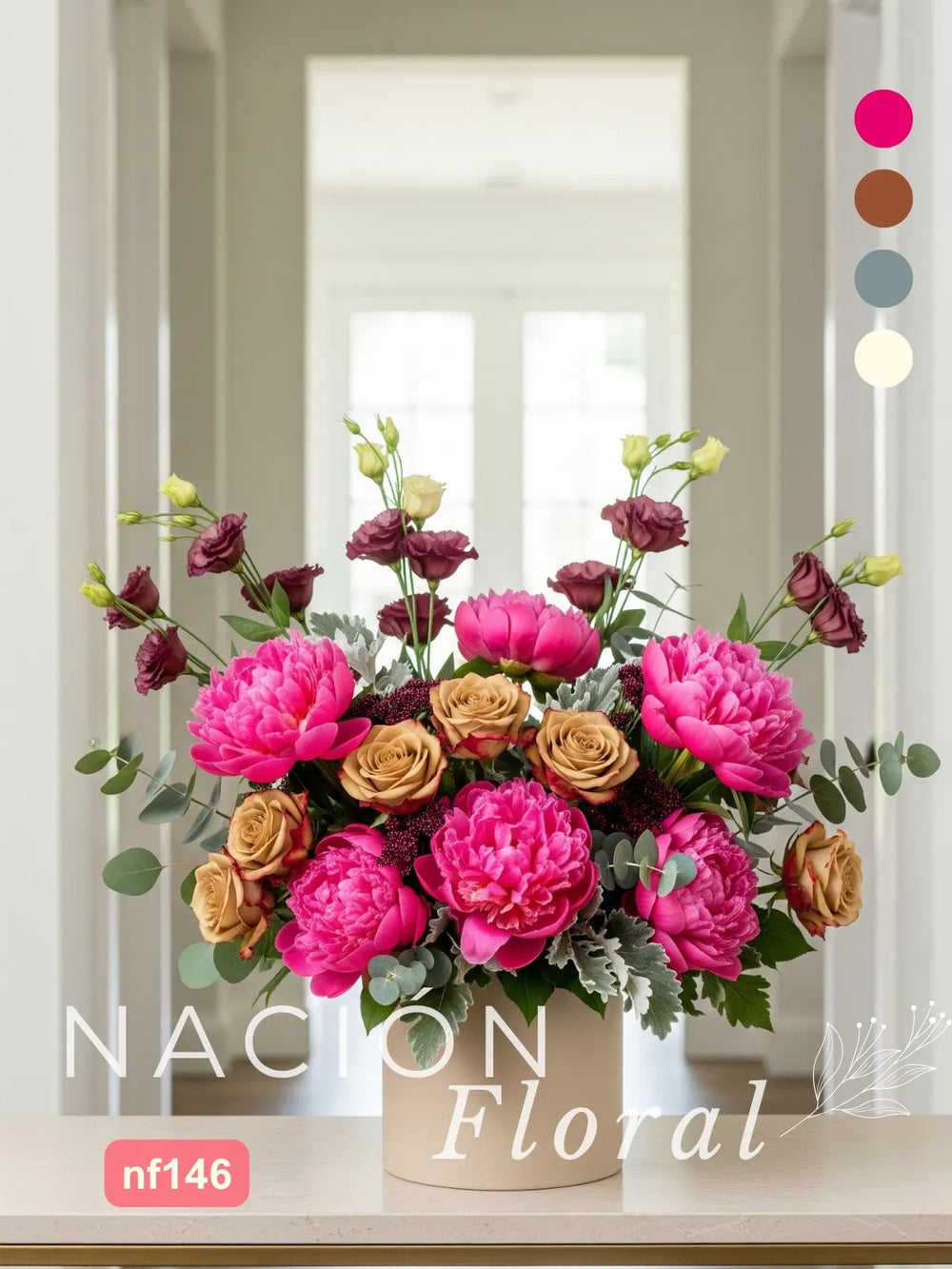 Elegancia Moderna: Arreglo de Peonías Rosas y Lisianthus Chocolate