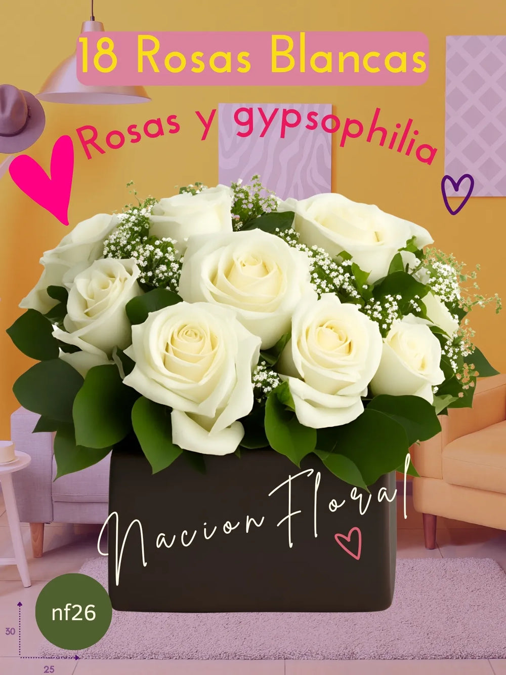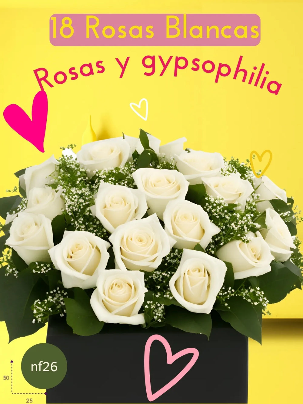 Sumérgete en la elegancia y la pureza con nuestro hermoso arreglo "Rosas Blancas con Baby Breath Encanto". Dieciocho rosas blancas y delicado baby breath se combinan armoniosamente, realzados por el follaje Israeli Ruscus y presentados en un sofisticado florero de cerámica color chocolate tipo cubo. Este diseño, creado con un enfoque en la sostenibilidad, es ideal para celebrar la inocencia, transmitir serenidad y añadir un toque de romanticismo y distinción a cualquier espacio.