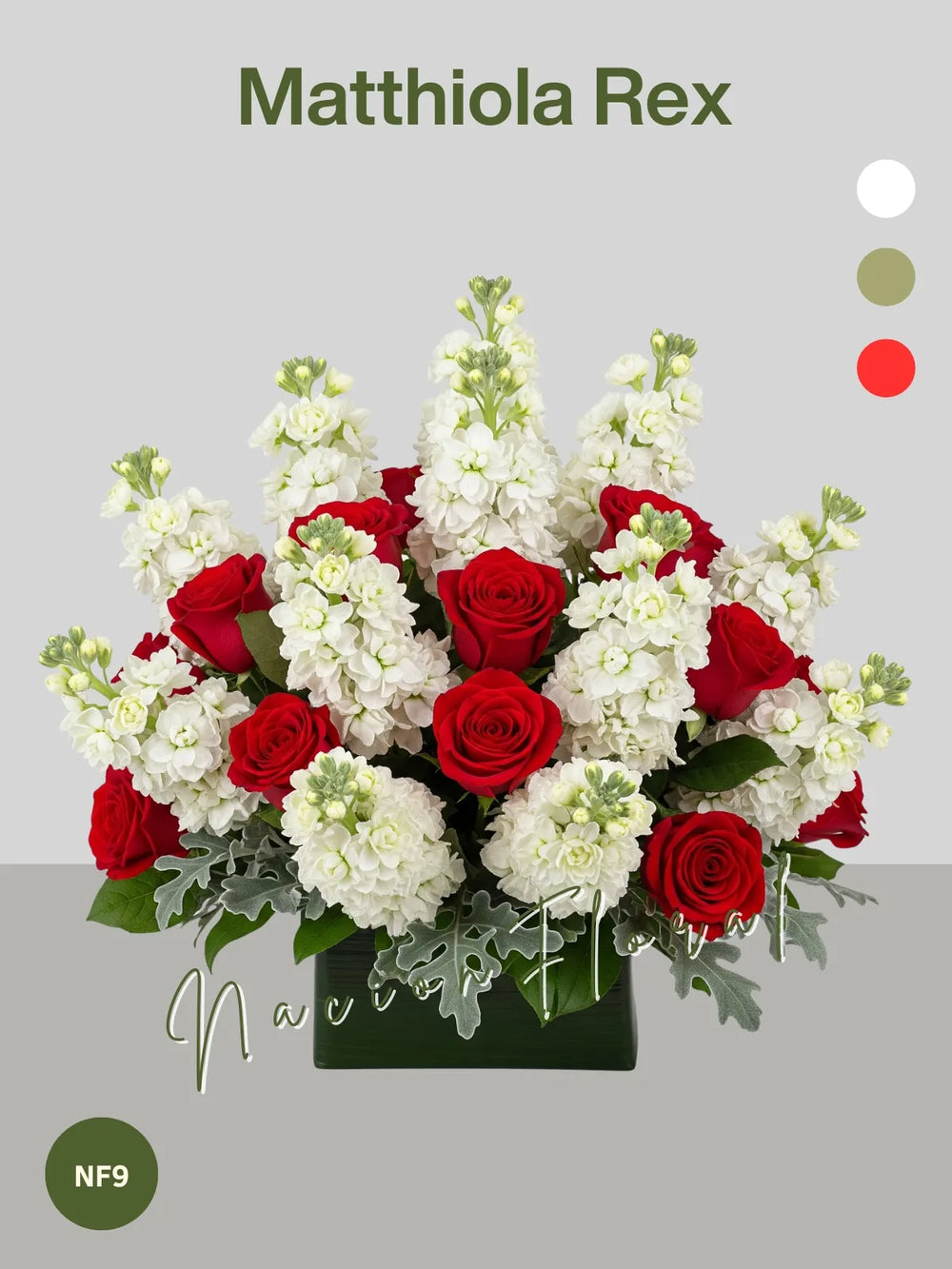 Este imponente arreglo floral es una declaración audaz de contraste y elegancia. Veinte Matthiolas blancas se elevan majestuosamente, aportando su rica textura y su dulce aroma, creando un telón de fondo etéreo para la intensidad vibrante de veinticuatro rosas rojas. Estas rosas, símbolos de amor profundo y pasión, estallan con color y dramatismo. Todo este conjunto floral se presenta con una base firme en un florero de cerámica negra tipo cubo, que no solo ancla la composición con su modernidad y sofisticación, sino que también realza la pureza de las Matthiolas y la audacia de las rosas. Este diseño captura miradas y emociones, perfecto para celebrar momentos inolvidables con fuerza y un estilo inconfundible.
